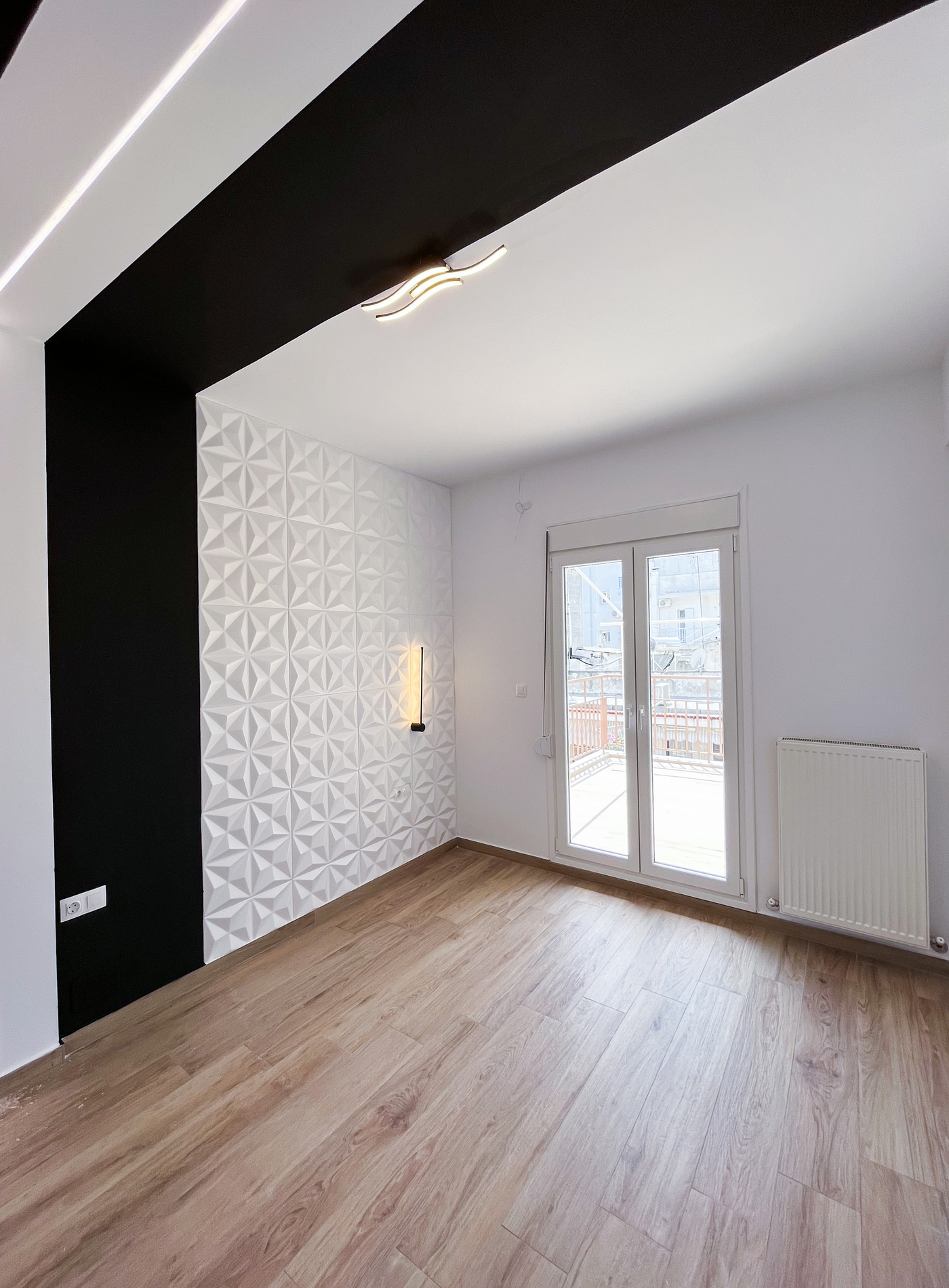 Ενα εξ ολοκλήρου ανακαινισμένο διαμέρισμα 90τ.μ. με 3 υπνοδωμάτια, σαλοκουζίνα ,μπάνιο με αποθηκευτικό χώρο, στον 4ο όροφο, κατασκευής 1970 το οποίο διαθέτει γερμανικά συνθετικά κουφώματα μάρκας Kommerling με τριπλή υάλωση, ατομική θέρμανση φυσικού αερίου, γύψινες διακοσμητικές κατασκευές. Έχει γίνει εκ βάθρων αλλαγή των ηλεκτρολογικών και των υδραυλικών εγκαταστάσεων.