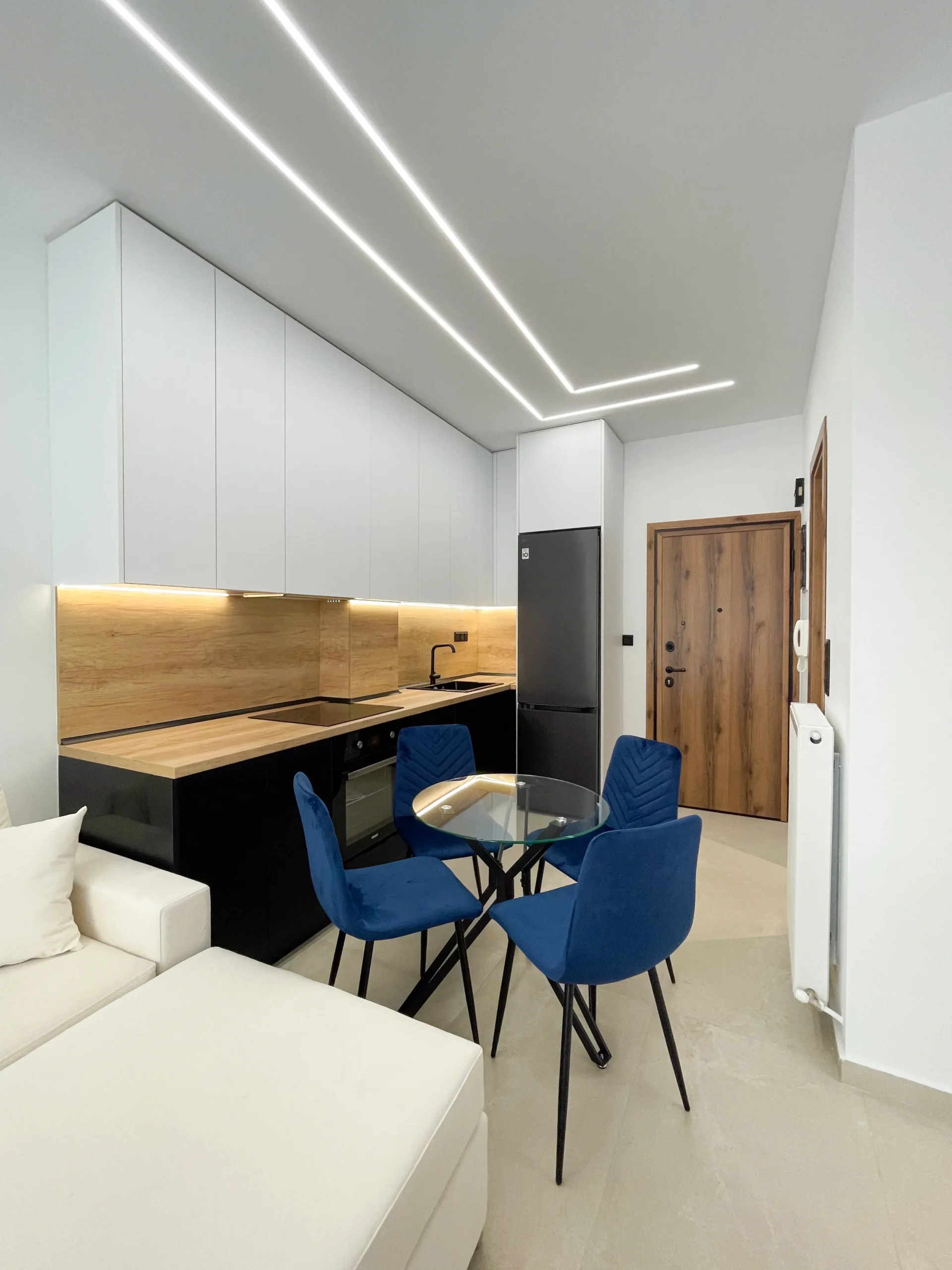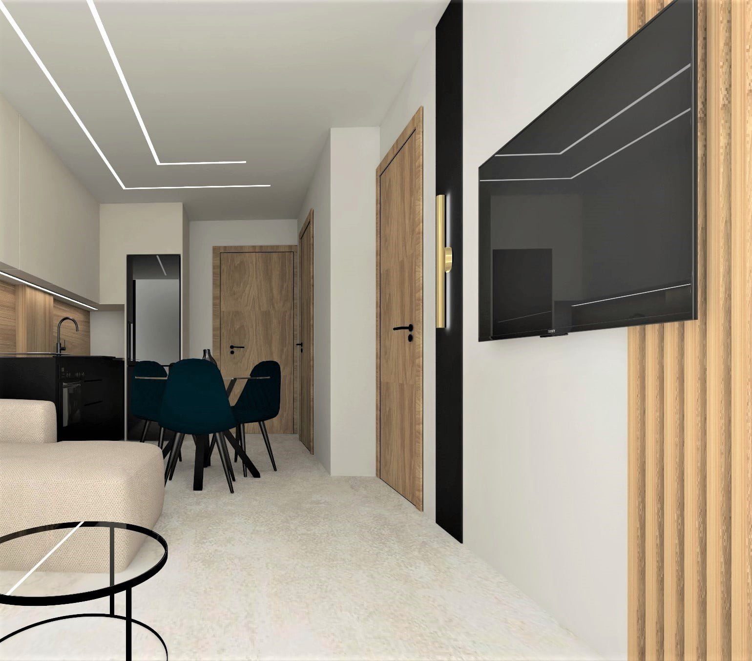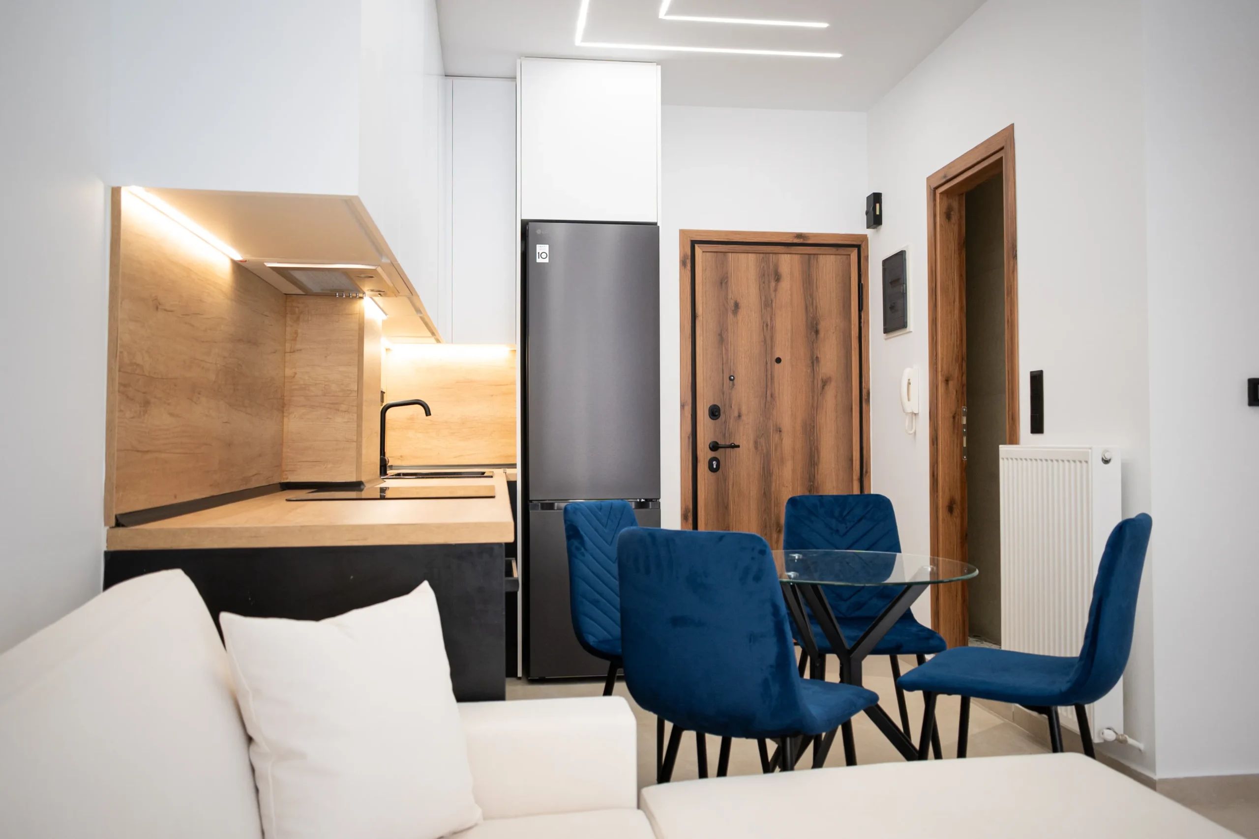 Ολοκληρωμένο project της Kouk Construction. Η ριζική ανακαίνιση αυτής της γκαρσονιέρας προήλθε από τον διαχωρισμό ενός μεγαλύτερου διαμερίσματος. Η εργονομία του και το ξεχωριστό του design είναι δύο πολύ ιδιαίτερα χαρακτηριστικά του.
