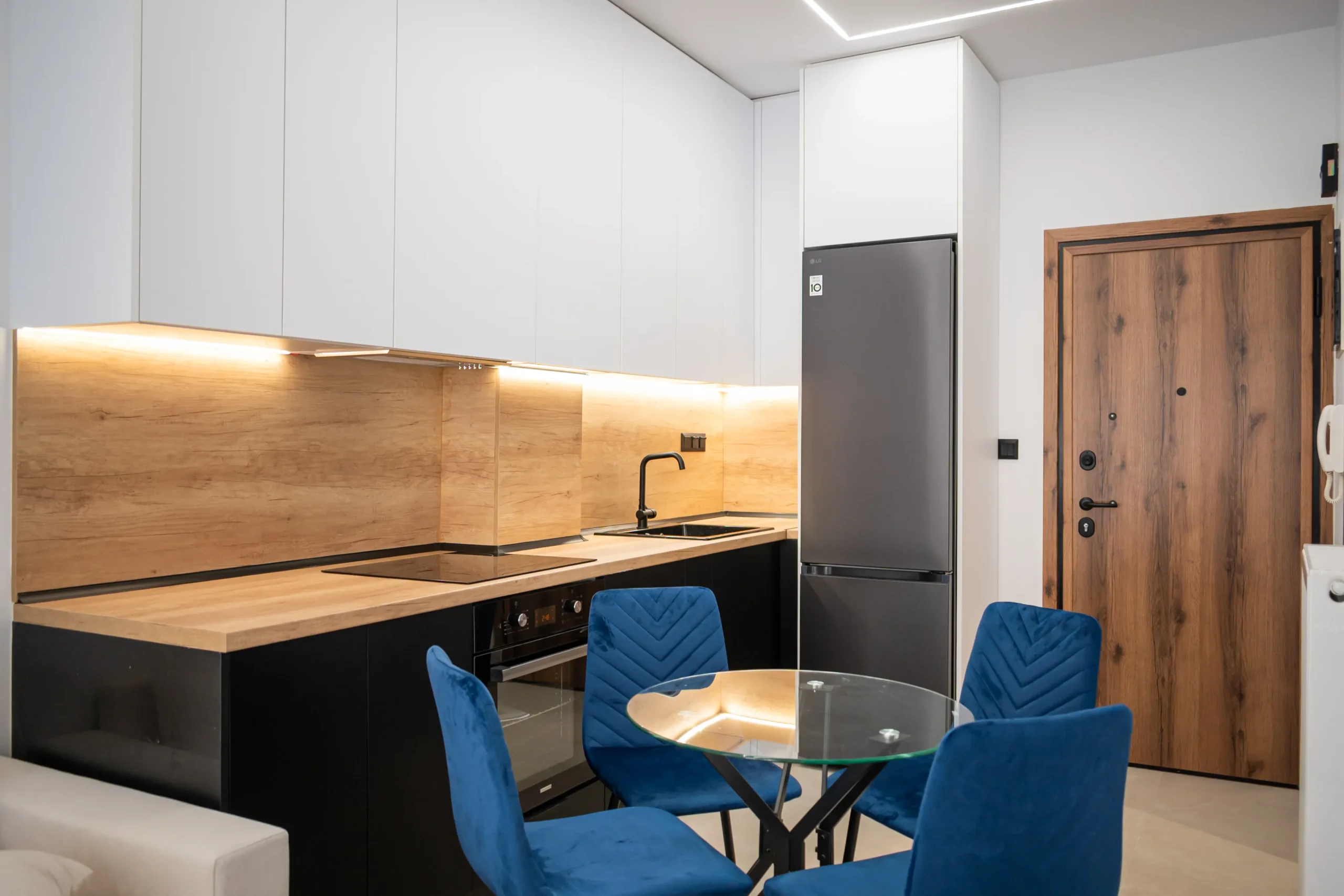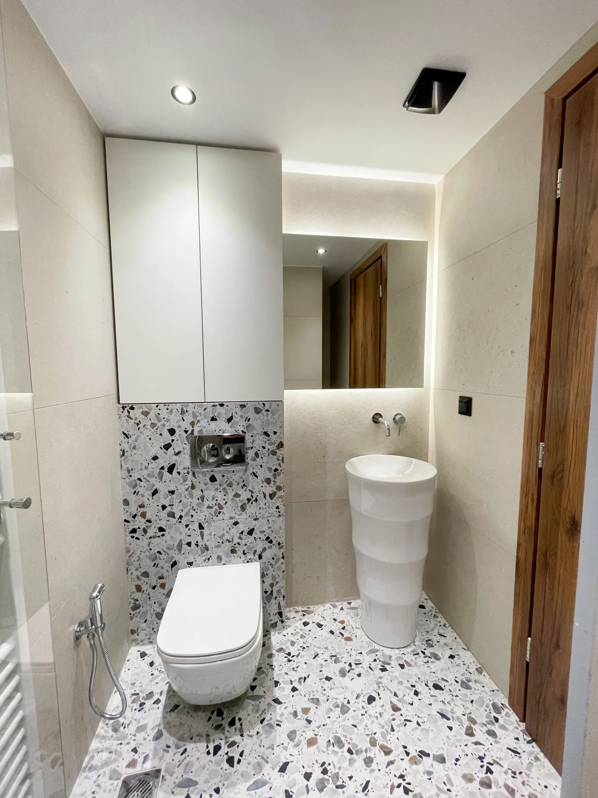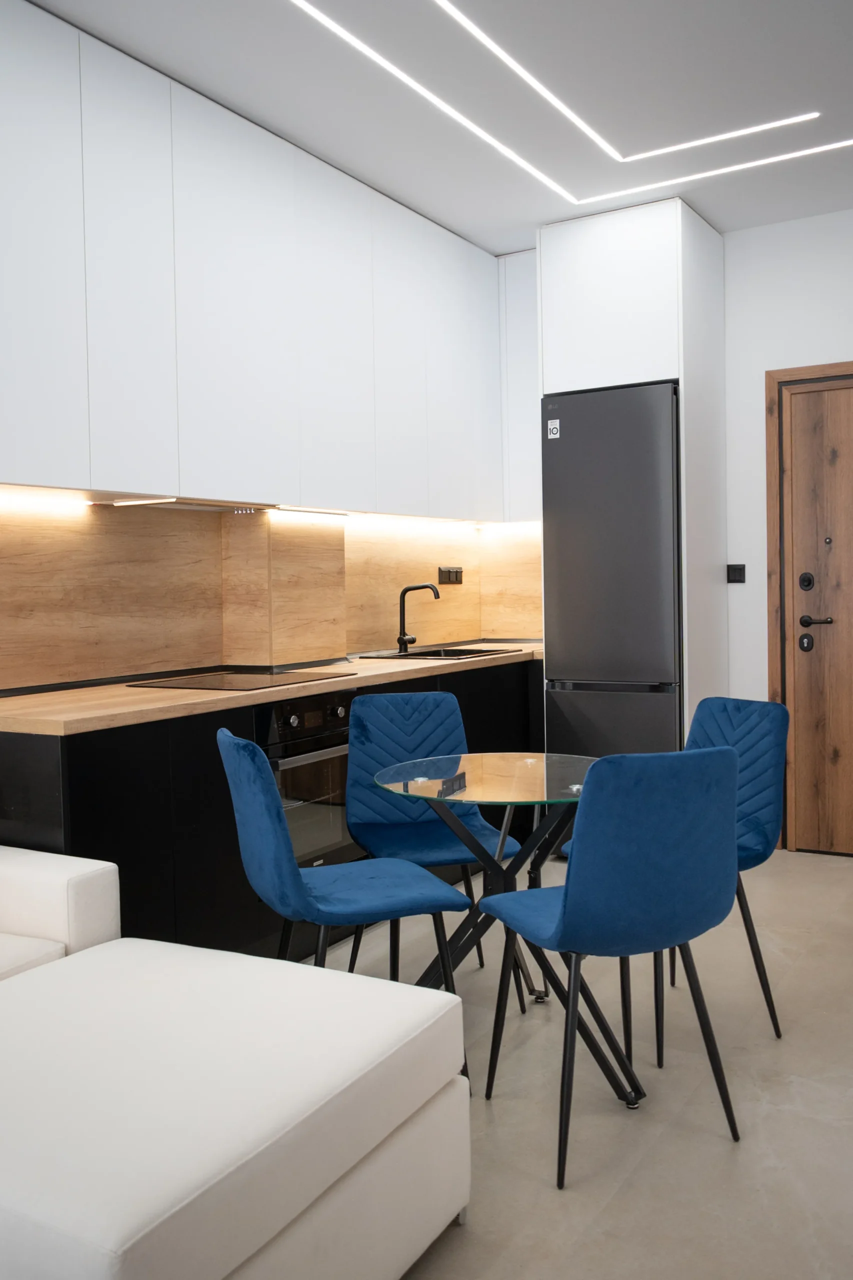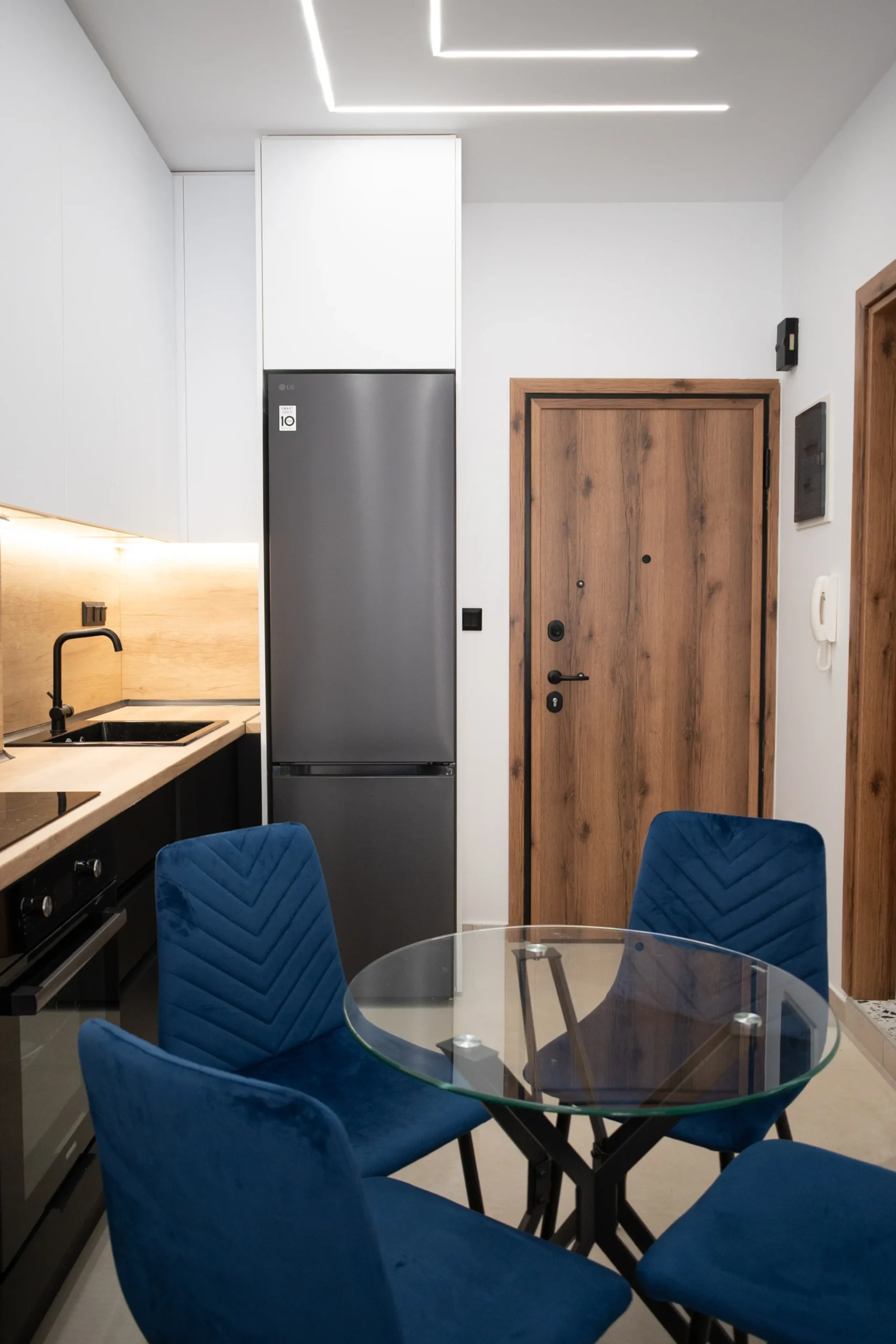 Ολοκληρωμένο project της Kouk Construction. Η ριζική ανακαίνιση αυτής της γκαρσονιέρας προήλθε από τον διαχωρισμό ενός μεγαλύτερου διαμερίσματος. Η εργονομία του και το ξεχωριστό του design είναι δύο πολύ ιδιαίτερα χαρακτηριστικά του.