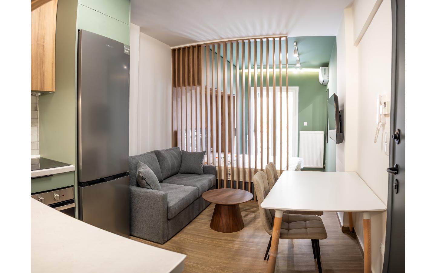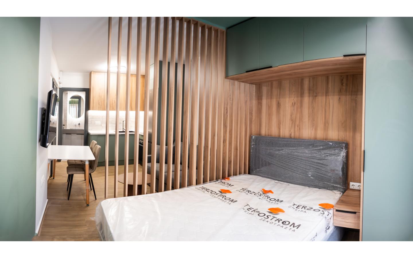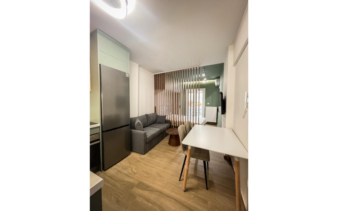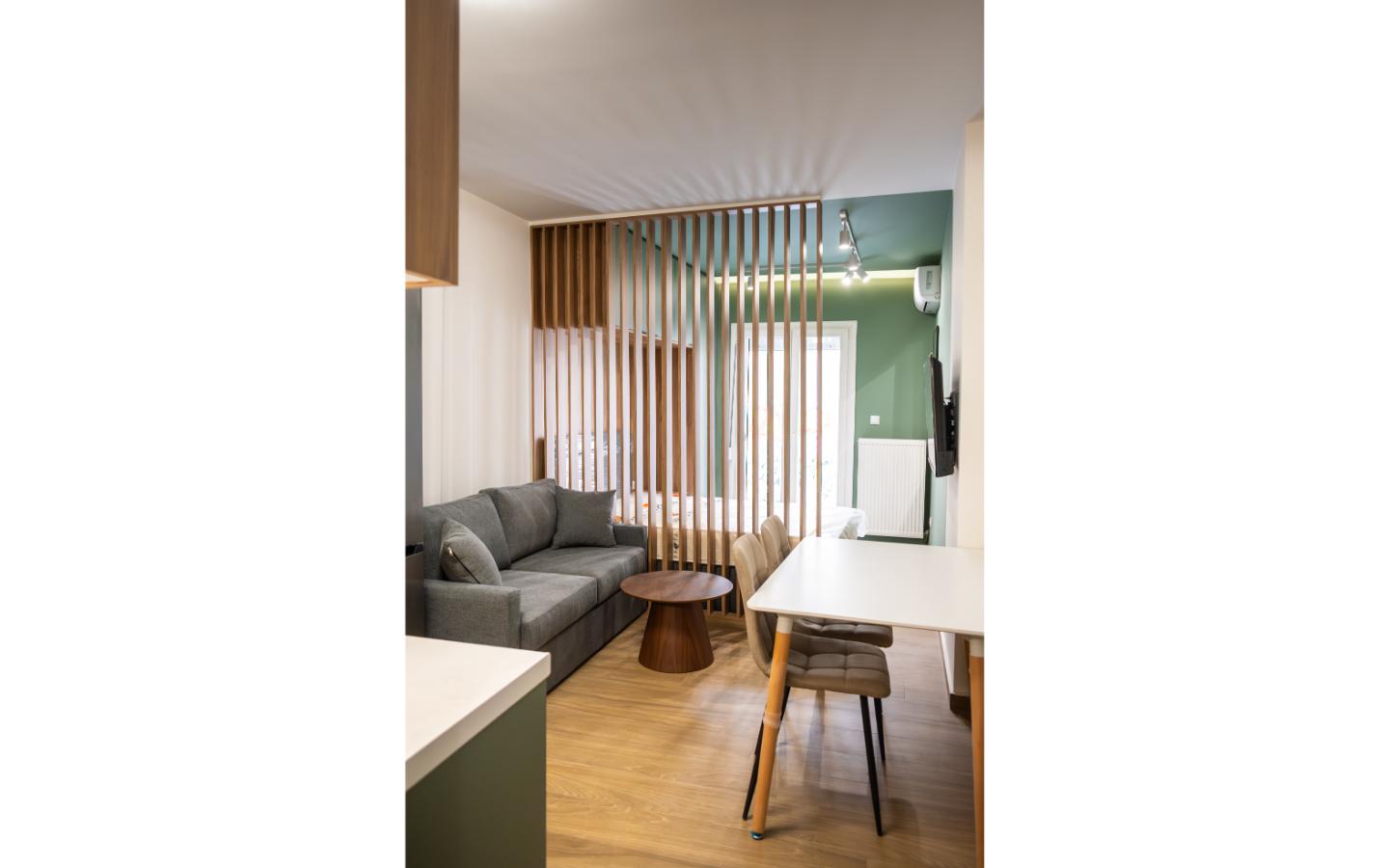 Το ολοκληρωμένο project της Kouk Construction. Η ριζική ανακαίνιση αυτού του στούντιο προήλθε από τον διαχωρισμό ενός μεγαλύτερου διαμερίσματος. Η εργονομία του και το ξεχωριστό του design είναι δύο πολύ ιδιαίτερα χαρακτηριστικά του.