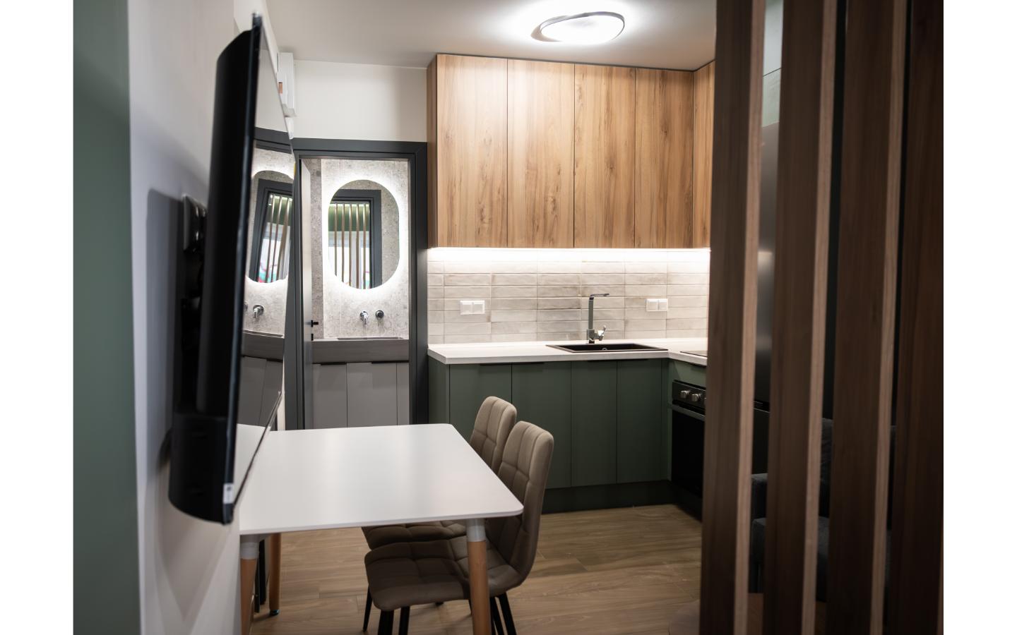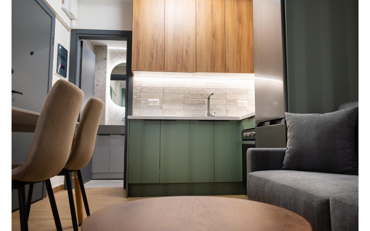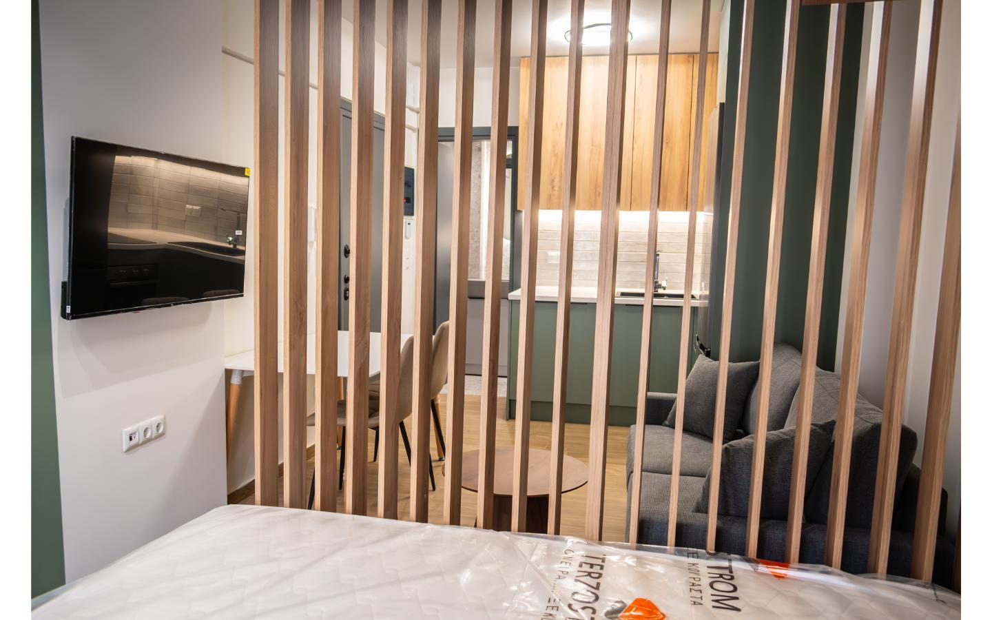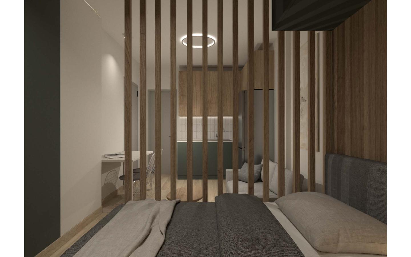 Το ολοκληρωμένο project της Kouk Construction. Η ριζική ανακαίνιση αυτού του στούντιο προήλθε από τον διαχωρισμό ενός μεγαλύτερου διαμερίσματος. Η εργονομία του και το ξεχωριστό του design είναι δύο πολύ ιδιαίτερα χαρακτηριστικά του.