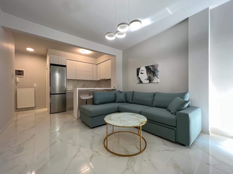 Το παραπάνω έργο αφορά το διαχωρισμό ενός μεγάλου διαμερίσματος σε δύο γκαρσονιέρες. Έξ ολοκλήρου ανακαινισμένη γκαρσονιέρα 48τ.μ. με 1 υπνοδωμάτιο, σαλόνι, κουζίνα και μπάνιο, στον 1ο όροφο, κατασκευής 1972 το οποίο διαθέτει γερμανικά συνθετικά κουφώματα μάρκας Kommerling με τριπλή υάλωση, ατομική θέρμανση φυσικού αερίου, γύψινες διακοσμητικές κατασκευές. Έχει γίνει εκ βάθρων αλλαγή των ηλεκτρολογικών και των υδραυλικών εγκαταστάσεων.